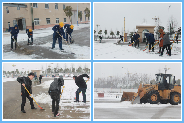 ? ? 根據(jù)應(yīng)急預(yù)案要求,結(jié)合現(xiàn)場實際情況,上午8點,各部門員工冒嚴(yán)寒、踏風(fēng)雪,攜帶清掃工具,開展全廠區(qū)掃雪行動,大家熱情高漲、干勁十足、分工明確,有的鏟雪、有的掃雪、有的堆雪,重點清掃主干道路及公共場所內(nèi)的積雪,方便員工工作生活出行。