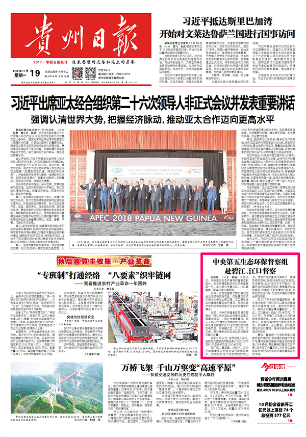 ? ? 2018年11月19日,貴州省電視臺新聞聯(lián)播、貴州日報,對中央第五生態(tài)環(huán)境保護(hù)督察組現(xiàn)場督察海螺創(chuàng)業(yè)附屬全資子公司銅仁海創(chuàng)生活垃圾焚燒發(fā)電項目進(jìn)行了深度報道,對該項目予以高度肯定。