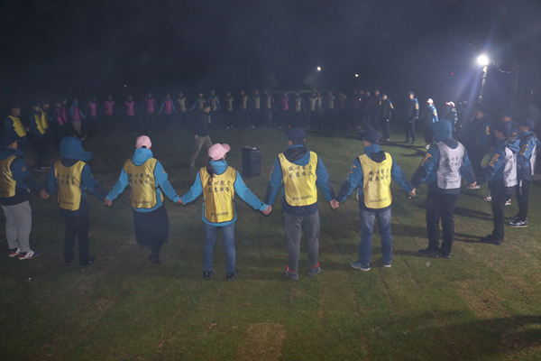 ? ? 銀星璀璨、皓月當空,工作人員手持火把點燃了篝火,拉開了篝火晚會的序幕,晚會內容豐富多樣,各隊伍熱情參與,準備了雙簧、舞蹈及個人獨唱等多個節目,各隊熱情的表演贏得了大家的陣陣叫好聲,晚會最后在“明天會更好”大合唱中落下帷幕。
