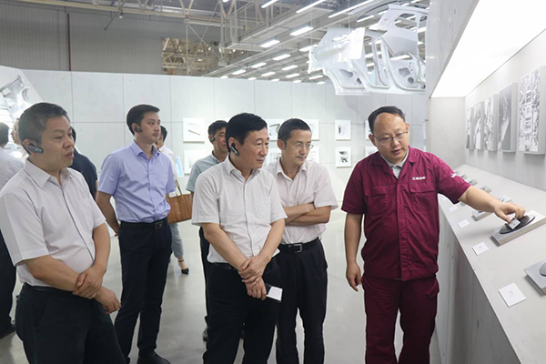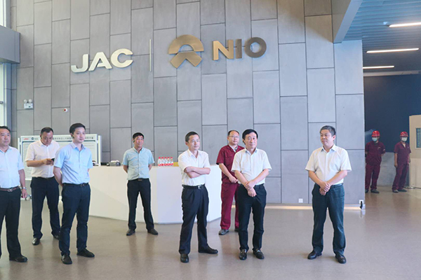 郭景彬董事長受邀先后參觀了江淮汽車蔚來工廠、新能源汽車總裝車間,體驗了新能源汽車和智能制造技術運用,了解到了現代汽車生產的工藝流程、裝備技術、智能制造和環保控制。據介紹,該蔚來基地規劃年產能10萬輛,車身車間可通過307臺機器人實現車身主要連接100%自動化,車間整體自動化率97.5%,是目前國內最新的全鋁車身生產線,蔚來的兩款量產車型ES8和ES6均在這里生產制造。