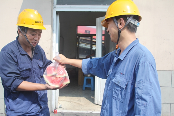 ? ? 一是定期組織開展現場夏季送清涼活動。統一購買了西瓜、人丹等防暑降溫用品發放至每位員工,給一線員工送上夏日的清涼。