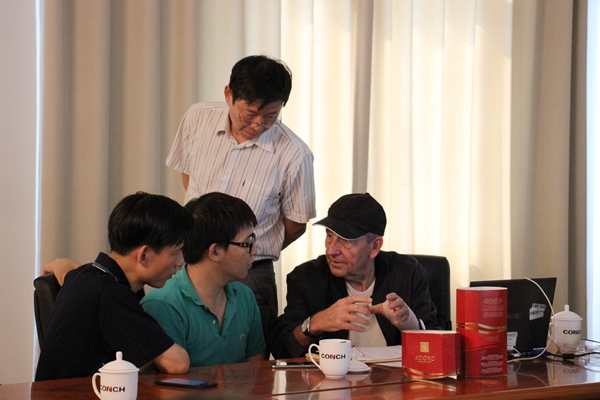 與外國專家、武漢建材設(shè)計院人員進(jìn)行交流