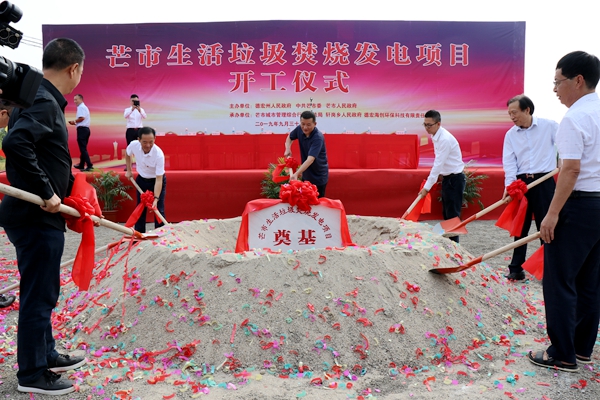 2019年9月30日,芒市生活垃圾發(fā)電項(xiàng)目開工儀式隆重舉行。云南省生態(tài)環(huán)境廳審批處處長(zhǎng)鮮衛(wèi)、德宏州人民政府副秘書長(zhǎng)楊旺保、中共芒市委副書記、市人民政府市長(zhǎng)毛曉、市人民政府副市長(zhǎng)孟玉相坐;海螺創(chuàng)業(yè)總經(jīng)理紀(jì)勤應(yīng)及海螺創(chuàng)業(yè)云南片區(qū)各公司負(fù)責(zé)人出席儀式,一起為芒市生活垃圾發(fā)電項(xiàng)目墊土培基。儀式由芒市人民政府副市長(zhǎng)付正江主持,出席儀式的還有德宏州人民政府、芒市人民政府,市綜合執(zhí)法局、軒崗鄉(xiāng)人民政府及施工單位相關(guān)代表共150余人。