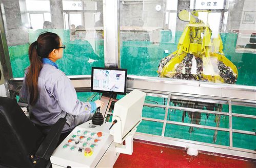 ????5月12日,記者在海螺水泥公司的忠縣綜合處理生活垃圾現(xiàn)場看到,一輛輛裝滿壓縮垃圾的環(huán)衛(wèi)車過磅計(jì)量後,進(jìn)入兩道電動(dòng)密閉門將垃圾倒入一個(gè)巨大的垃圾儲(chǔ)坑??友Y面,一只巨大的“手”上下擺動(dòng),抓起一把把垃圾直接丟進(jìn)焚燒爐。