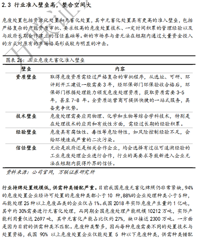 北極星固廢網獲悉,萬聯證券測算2020年工業危廢年產量已超過1億噸,但由于持證企業產能利用率低、處置種類錯配等因素,持證危險廢物處理規模僅達34%,CR8僅達28%。伴隨政策落地以及運營監管的加強,未來行業將逐漸規范化,龍頭企業將迎來新的一輪合并期,市場占有率將進一步提升。