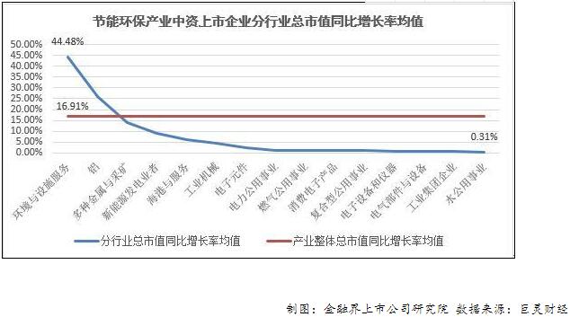 ? ? 節(jié)能環(huán)保產業(yè)與其他行業(yè)的交叉性比較強,細分行業(yè)眾多。報告對截至4月30日總市值同比增長率排名前15的細分行業(yè)總市值同比增長率均值情況進行分析,發(fā)現(xiàn)在GICS4級行業(yè)分類下,環(huán)境與設施服務行業(yè)總市值同比增長率均值最高,遠超產業(yè)整體。主要是在環(huán)保治理壓力下,環(huán)保相關行業(yè)發(fā)展前景更被看好。