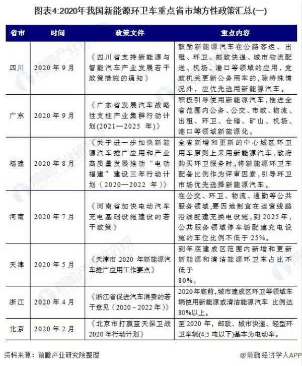 為推動新能源汽車的普及程度,國家和地方計劃通過鼓勵在環衛等公共領域用新能源車以形成示范作用,2020年以來新能源環衛車產業驅動政策密集出臺,力度強且規劃明確。