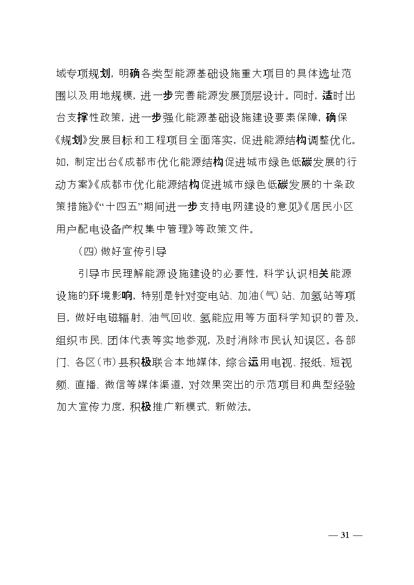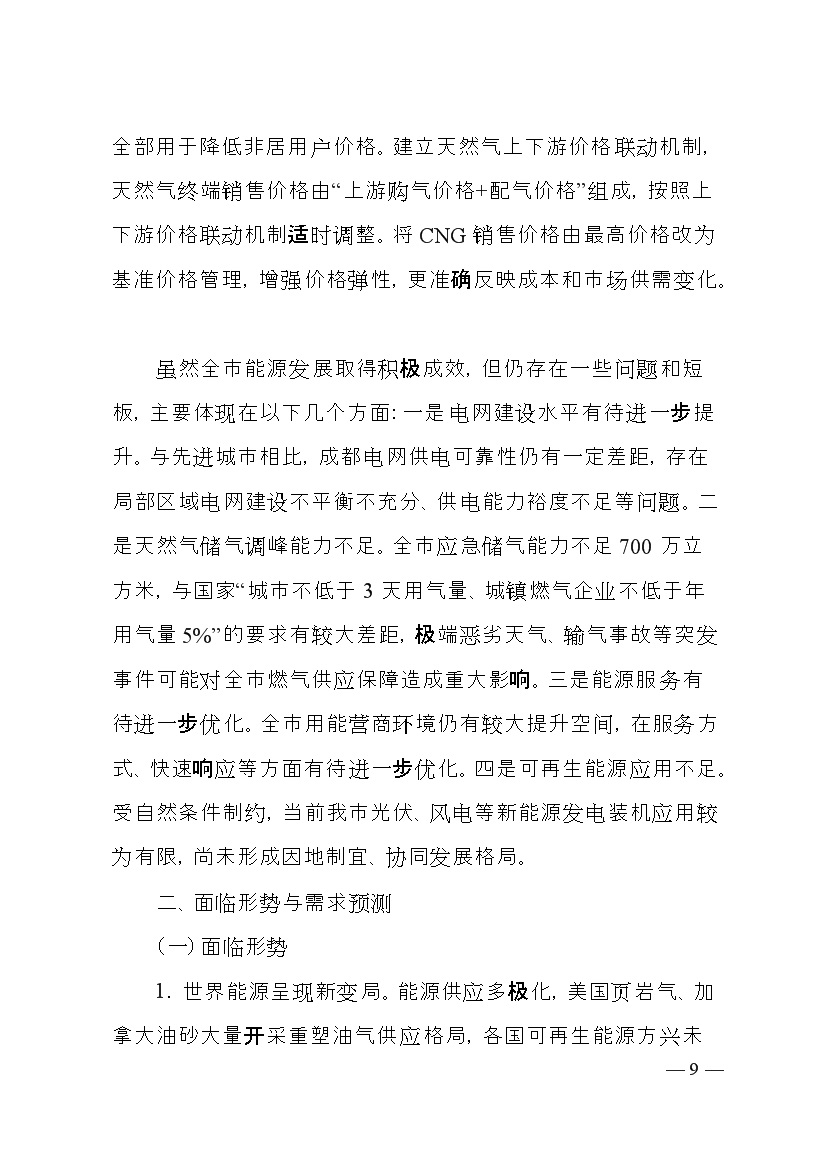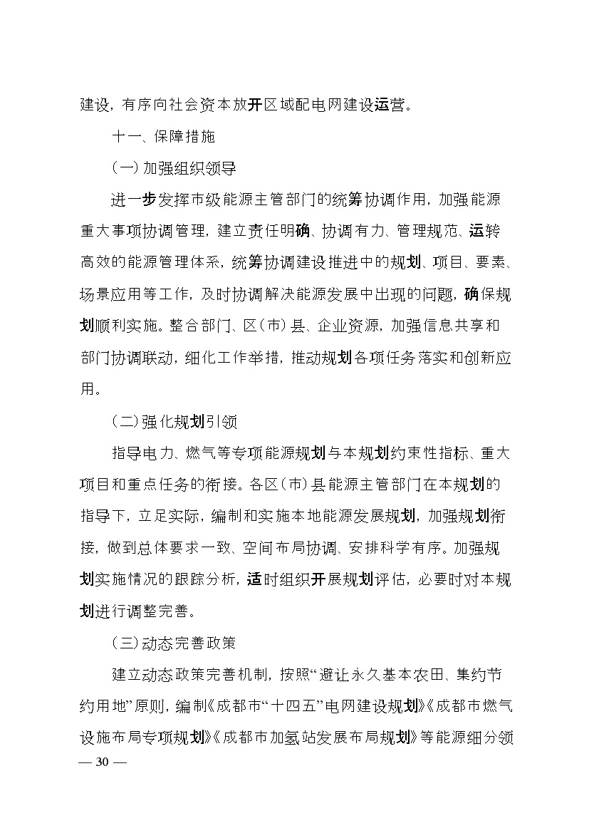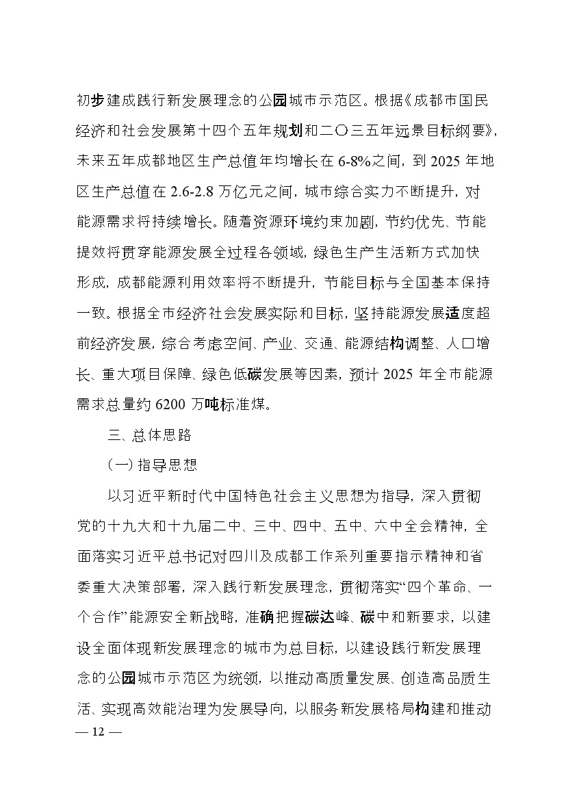 成都市人民政府印發《成都市“十四五”能源發展規劃》,明確了以創新發展為動力,以強化保障能力為抓手,加快構建新型電力系統,持續推進清潔能源替代,優化能源消費結構,全力提升能源利用效率發展思路。并提出總量控制目標、消費結構目標、能源安全保障、等能源節約目標、基礎設施建設等發展目標。