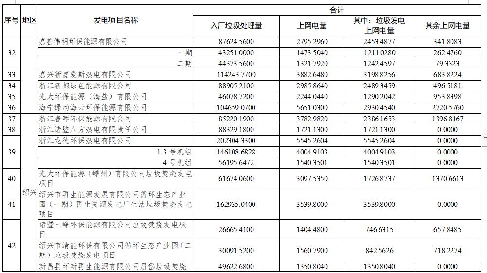 二、重新核定新昌縣環新再生能源有限公司眉岱垃圾焚燒項目2021年4月至2021年9月垃圾發電上網電量。具體詳見附件2。