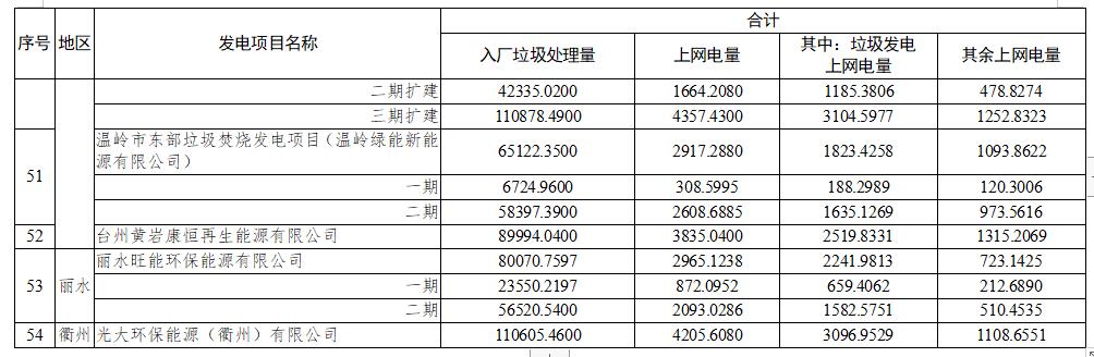 一、核定54個垃圾焚燒發電項目2022年1-3月垃圾發電上網電量,具體詳見附件1。