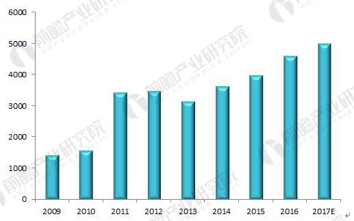 圖表1:2009-2017年工業危險廢棄物產生量(單位:萬噸)