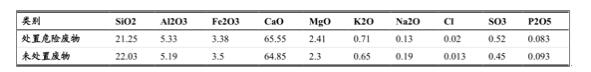 北京水泥廠投加危險廢棄物前后熟料化學成份對比(%)表明協同處置危廢后對水泥品質影響不大