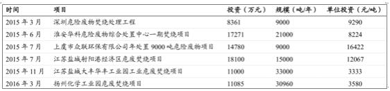? ? 協同處置危廢產能即將進入爆發期:根據我們不完全統計,目前處于環評公示階段的協同處置危廢項目超過40個;根據中國循環經濟協會副會長、環保部原污防司巡視員李新民2017年5月在長興危廢論壇上的發言,獲得批文尚未投產的水泥窯危廢協同處置項目超過60個,由于建設周期短,在建產能將于一年內投運,我們判斷協同處置危廢產能將在2019年進入爆發期。