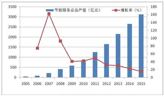 ? ? 2015年,我國節能環保產業中高效低耗的先進環保技術裝備與產品的市場占有率為10%,主要以傳統裝備制造業為主。隨著產業規模進一步擴張,節能環保裝備制造業仍會占有很大比重,節能環保服務業所占比重將進一步增加。節能服務業總產值由2008年的417.3億元增至2015年的3127.34億元,環保服務業年收入總額從2010年的1500億元,增長到2015年5000億元,發展速度高于節能環保產業的其他領域。