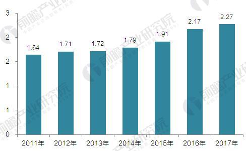 圖表2:2011-2017年我國城市生活垃圾清運量及預測(單位:億噸)