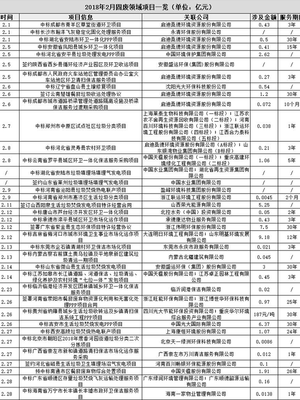 ? ? 繼2017年11月拿下5固廢項目、12月拿下8固廢項目、2018年1月拿下6項目,啟迪桑德三次成為當月拿單王后,2018年2月,啟迪桑德持續發力,捷報不斷,拿下7個固廢項目,再次成為拿單王。值得一提的是,7項目包括6個環衛領域項目和1個餐廚垃圾處理項目。
